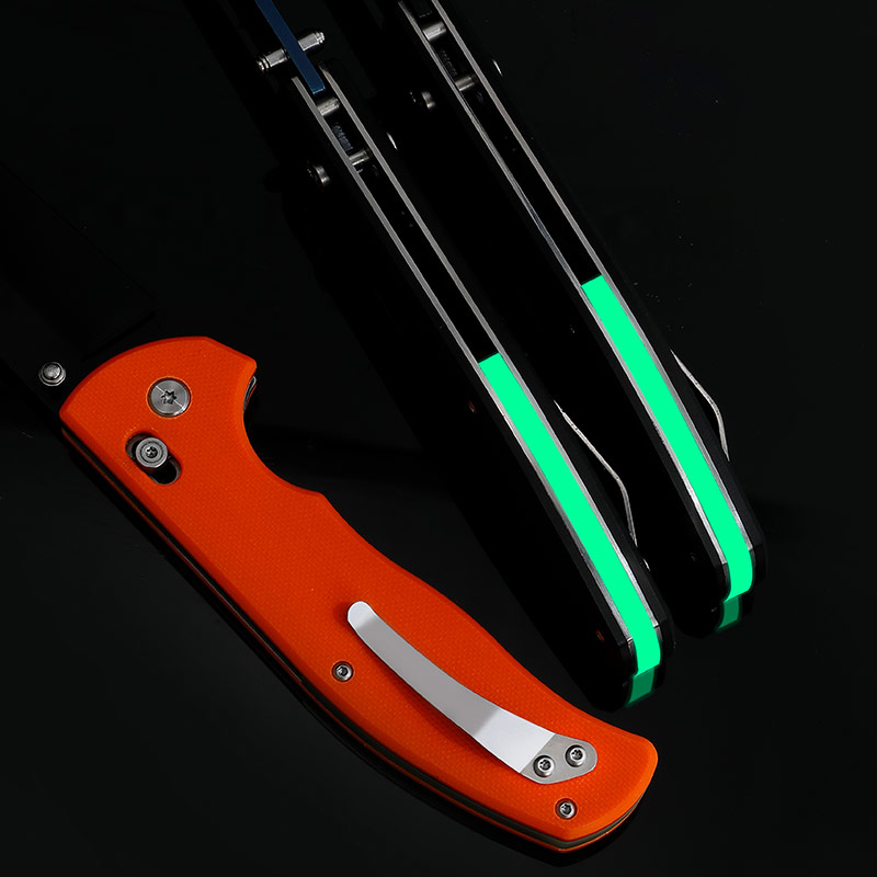 Glow Dark Titanium Pocket Knife for Outdoor Survival Camping Hunting Nylon Handle Push Button Blade Change Fluorescent Light Bar-FA3277